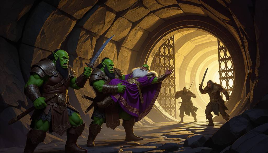 The prince, a dreamer allegedly obsessed with elvish culture, spoke of a grand alliance between their races. But his companion, the orc leader Alarag, was brutish and mean-spirited. The princeling pleaded with the adventurers to let him and Alarag in so they could parlay with the gathered dwarven royals.