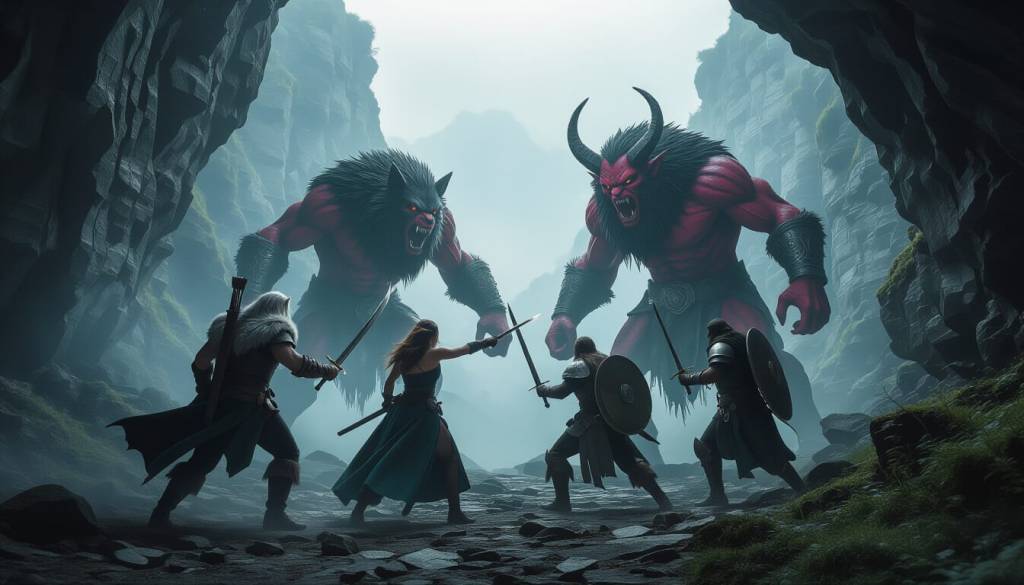 Meanwhile, Torben and Zarah watched the chaos from the relative safety of the passage’s hilltop edge. Turning to the wolfkin, Torben said, “I cannot leave them to this madness. Hold tight to this,” as he handed her one end of his rope before diving headlong into the crevice.