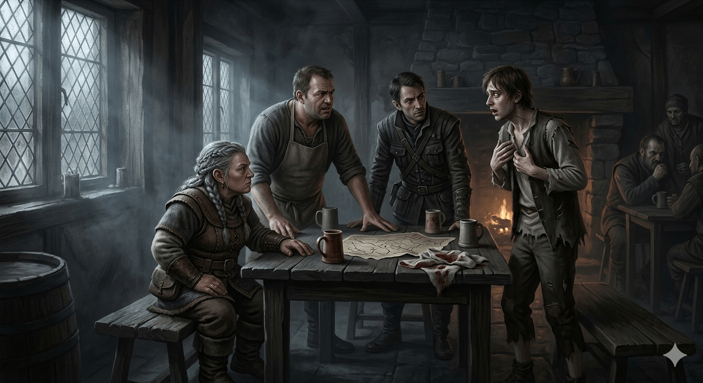 The morning light in Hexenwald was as weak and gray as a watered-down ale, filtering through the grime of The Laughing Man’s windows. While the village prepared for the coming festivities of Fall Turn, a heavier atmosphere had settled over the common room—one that smelled less like festival bread and more like damp earth and old blood.