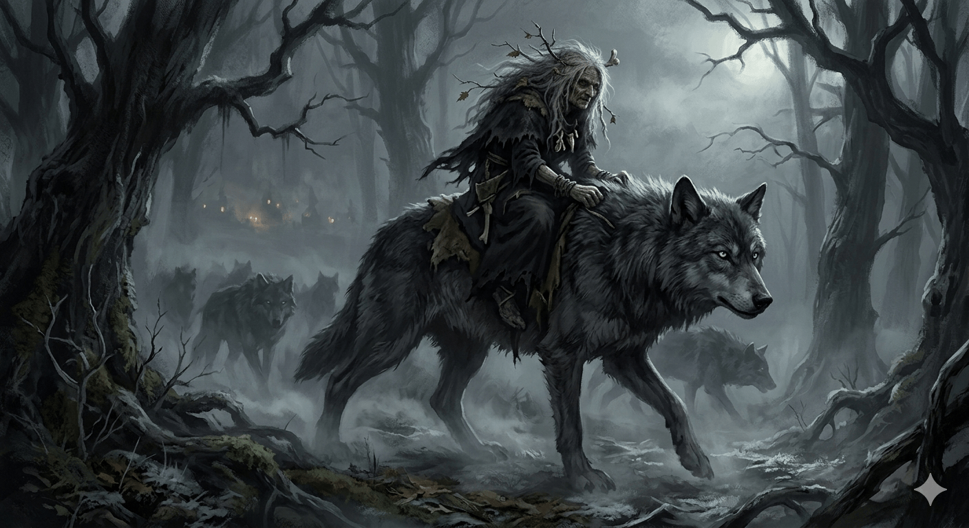Before Zara could move closer, the woman vanished into a rising mist. Moments later, a different shadow emerged: a massive alpha wolf, ridden by an old woman whose hair was a tangled nest of sticks and black rags. The pack let out a haunting yowl, and Zara, moved by instinct, threw her own voice into the night. A mighty howl tore through the air, met not with a threat, but with a chilling call of acknowledgment from the alpha.