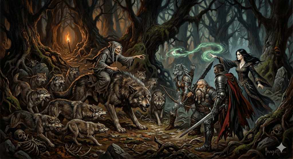 The adventurers fought a running battle through the forest before breaking the first line of the dead. While they caught their breath, they heard what sounded like a warhorse followed by a pack of wolves.