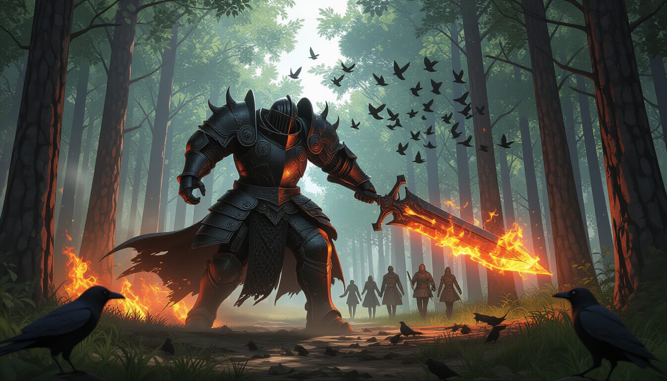 The smoke had a taste. Bitter and mineral, like scorched iron and rot. Every breath felt borrowed as the four travelers picked their way through the ruined treeline, boots sinking into ash that still whispered with the memory of flame. The forest had not burned naturally. This was a place struck down—a battlefield turned mausoleum.