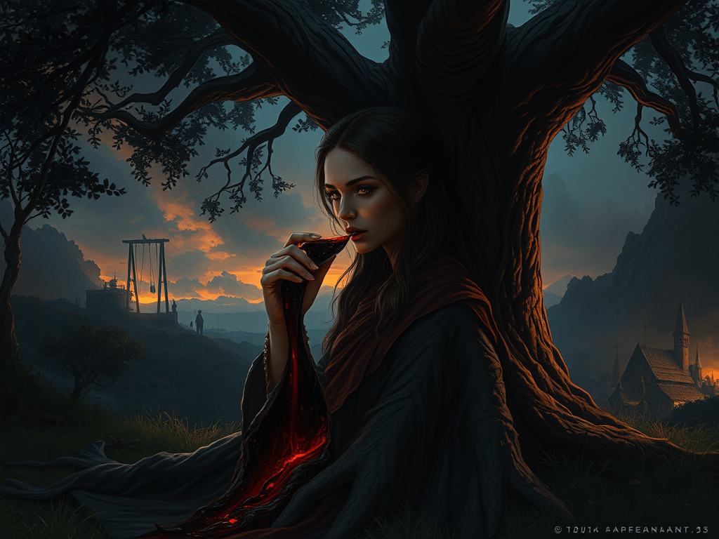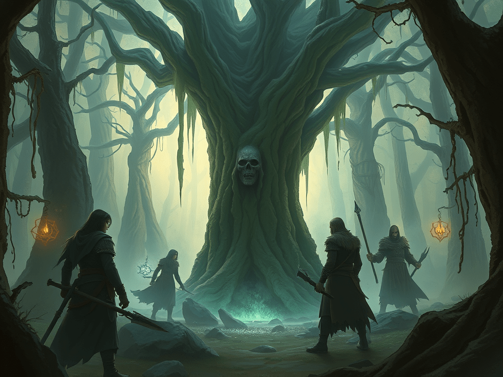 The sickly sweet taste clung to Lucia’s tongue, a forbidden pleasure laced with the metallic tang of corruption. The ancient tree’s sap pulsed with a dark energy as she drank, a secret indulgence that both thrilled and chilled her. With a furtive glance around the shadowed glade, she filled her wineskin, the viscous liquid sloshingContinue reading “Session 46: Back on the Trail”